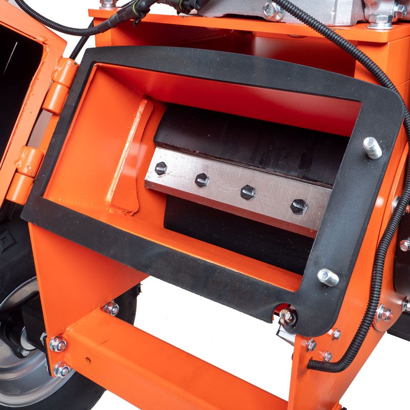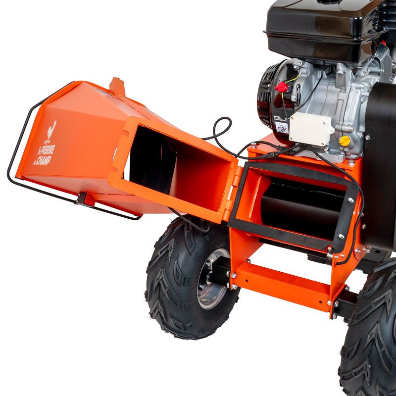 Ses grosses roues gonflées, son timon avec boule d’attelage 50mm, sa large trémie d’alimentation montée sur gonds ainsi que sa goulotte d’éjection orientable vous garantiront un déplacement et un travail simple et efficace.