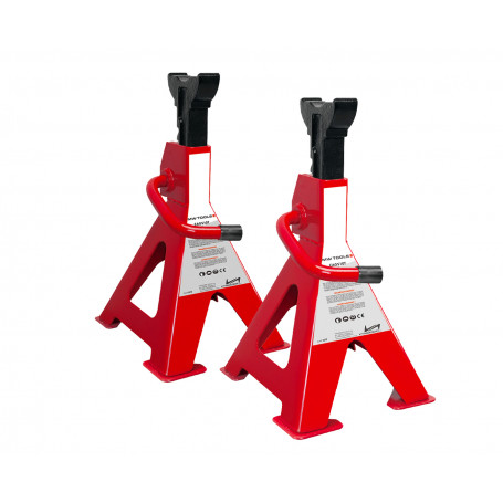 Ce jeu de 2 chandelles d’une capacité de 10 tonnes est parfait pour les voitures, les SUV, les camping-cars, remorques, fourgonnettes, minibus, etc… Conçus pour être robustes et durables, ces supports d’essieu sont équipés de pieds extra-larges pour une meilleure stabilité.