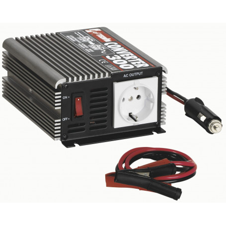 Convertisseur – inverseur 12 V – 230 V CA. Idéal pour l’alimentation, dans les voitures et camping-cars, les télévisions portatives, rasoirs, etc. Ideal également pour le rechargement des piles des ordinateurs portables, ordinateurs de poche, appareils photographiques numériques, caméras, smartphone, etc. Branchement à l’ allume-cigare du véhicule, il convertit la tension 12 V de la batterie à 230 V en courant alternatif. Portable, compact et équipé d’une protection contre la surcharge et l’inversion de polarité.