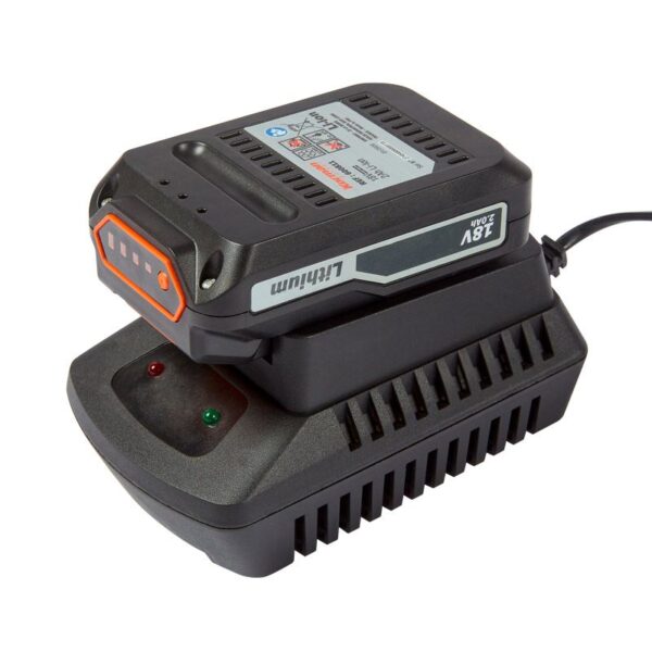 Chargeur pour batterie KORMAN 600811 18V, compatible avec nos produits de jardin motorisés de la gamme Korman : coupe-bordure, taille-haie et souffleur.