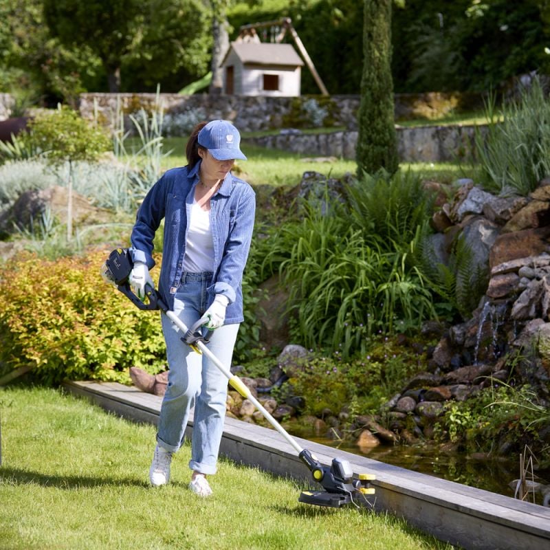 | + produit | – Réserve de fil : 2 x 3m – Tête inclinable et rotative – Poignée auxiliaire réglable |