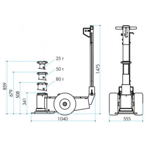 Cric hydropneumatique MAMMUT d’une capacité de 80 tonnes avec cylindre triple.