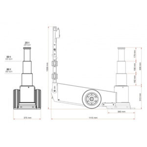 Cric hydropneumatique d’une capacité de 80 tonnes avec triple cylindre.