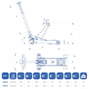 Cric de garage 2 tonnes avec profil bas, modèle long.
