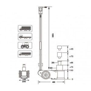 Cric rouleur camion poids lourd hydropneumatique d’une capacité de 40 tonnes. Cric de garage mobile pour le levage de camions, tracteurs, bus,…