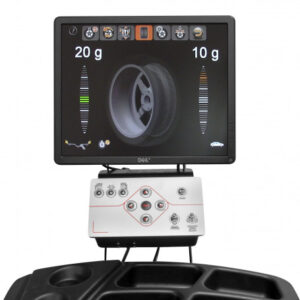 Machine à équilibrer automatique PRO pour les roues jusqu’à 65 kg et 24 pouces, avec 9 modes d’équilibrage, avec calcul automatique du diamètre de la roue, de l’épaisseur de la jante et utilisation d’un faisceau laser et d’un frein d’écriture pour une application très précise du plomb.