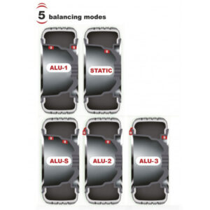 - 5 modes d’équilibrage pour les jantes en acier et en aluminium: Normal, ALU-1, ALU-2, ALU-3, Static. Convient à l’équilibrage statique et dynamique