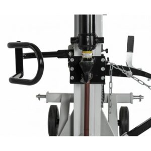 • Pour limiter l’encombrement en hauteur, le vérin peut être facilement abaissé. En effet il suffit de retirer 2 goupilles pour descendre le vérin (hauteur fendeur avec vérin descendu envrion 2m).