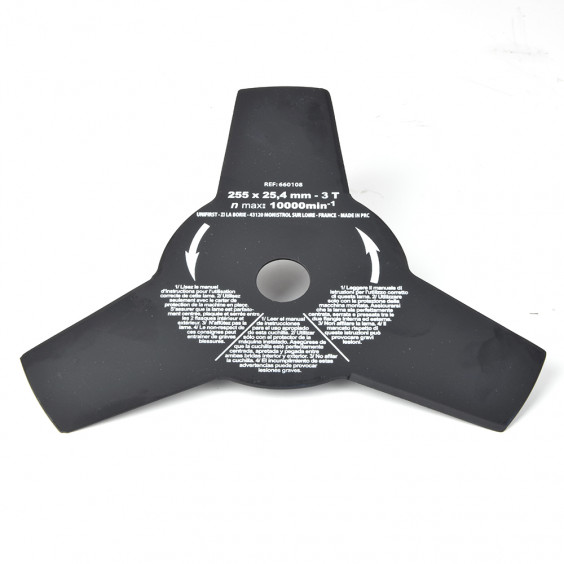 Lame débroussailleuse 3 dents, dimension Ø255X25,4mm 1,6mm .