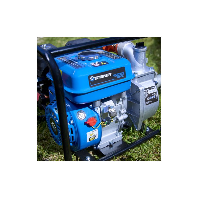 Par sa mobilité la motopompe Steiner 500398 à essence sera la plus adaptée à tous vos travaux agricoles ou d’évacuations d’eau qui requièrent un fort rendement.