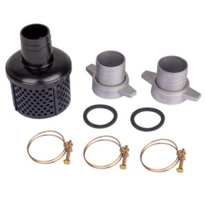 2 raccords Ø50mm avec brides de fixation et colliers de serrage, 1 crépine avec support |