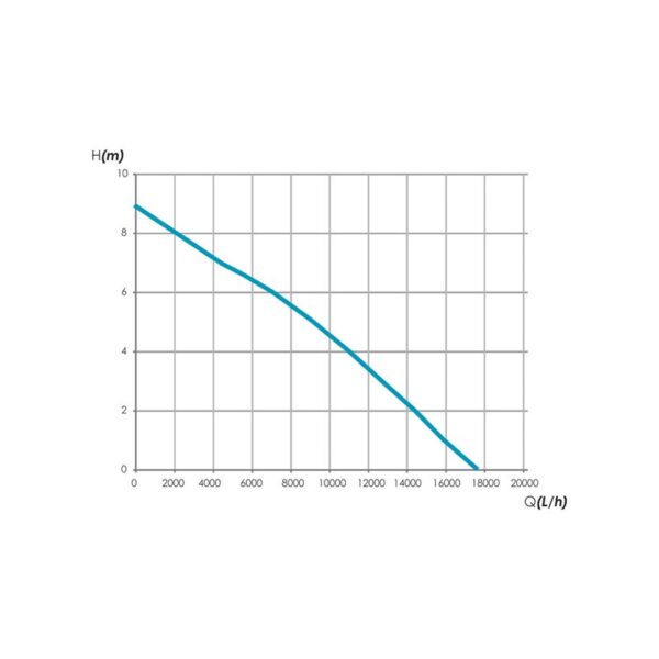 Débit très puissant pour cette pompe de 1000W avec un débit max. de 18000 l/h.