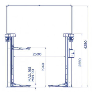 • Disposition torsadée des colonnes : le centre de gravité se trouve devant les colonnes. Cela permet au conducteur d’entrer plus rapidement le véhicule pour démarrer immédiatement le levage