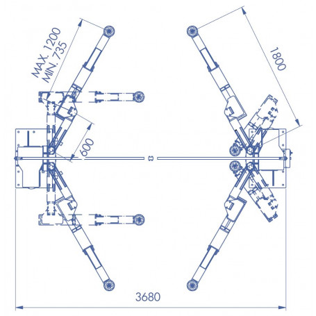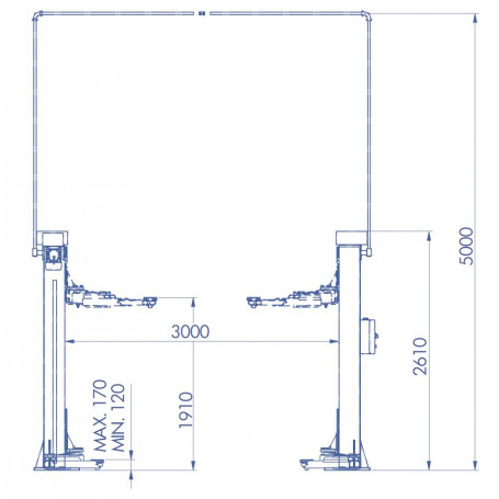 Pont électromécanique à 2 colonnes OMCN 5,5 t avec double articulation.
