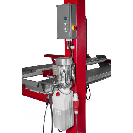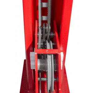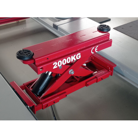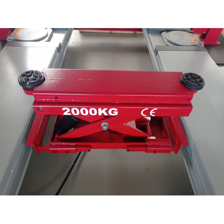 - Entre les plaques de roulage se trouve un élévateur à ciseau mobile monté sur rail, avec 2 blocs en caoutchouc