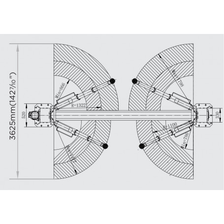 Les points de levage peuvent être relevés, grâce auxadapteurs en option de 70mm et 100mm, ce qui permettra de lever des véhicules jusqu’à la hauteur maximale du pont (1945mm).