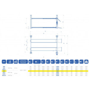 Pont hydraulique à 4 colonnes 4 tonnes avec rampes plates.