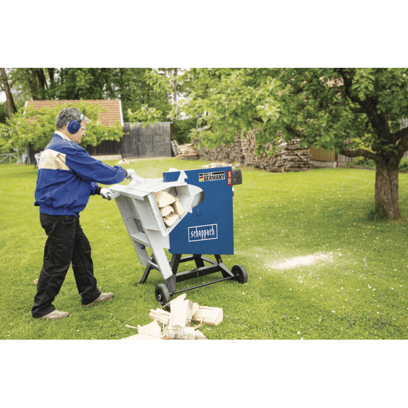 Scie à bûches de marque SCHEPPACH, fabriquée et reconnue en Allemagne pour son très bon rapport qualité/prix.