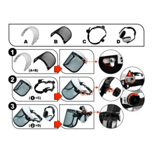 Poids : Visière grillagée avec support + casque anti-bruit : 572gr